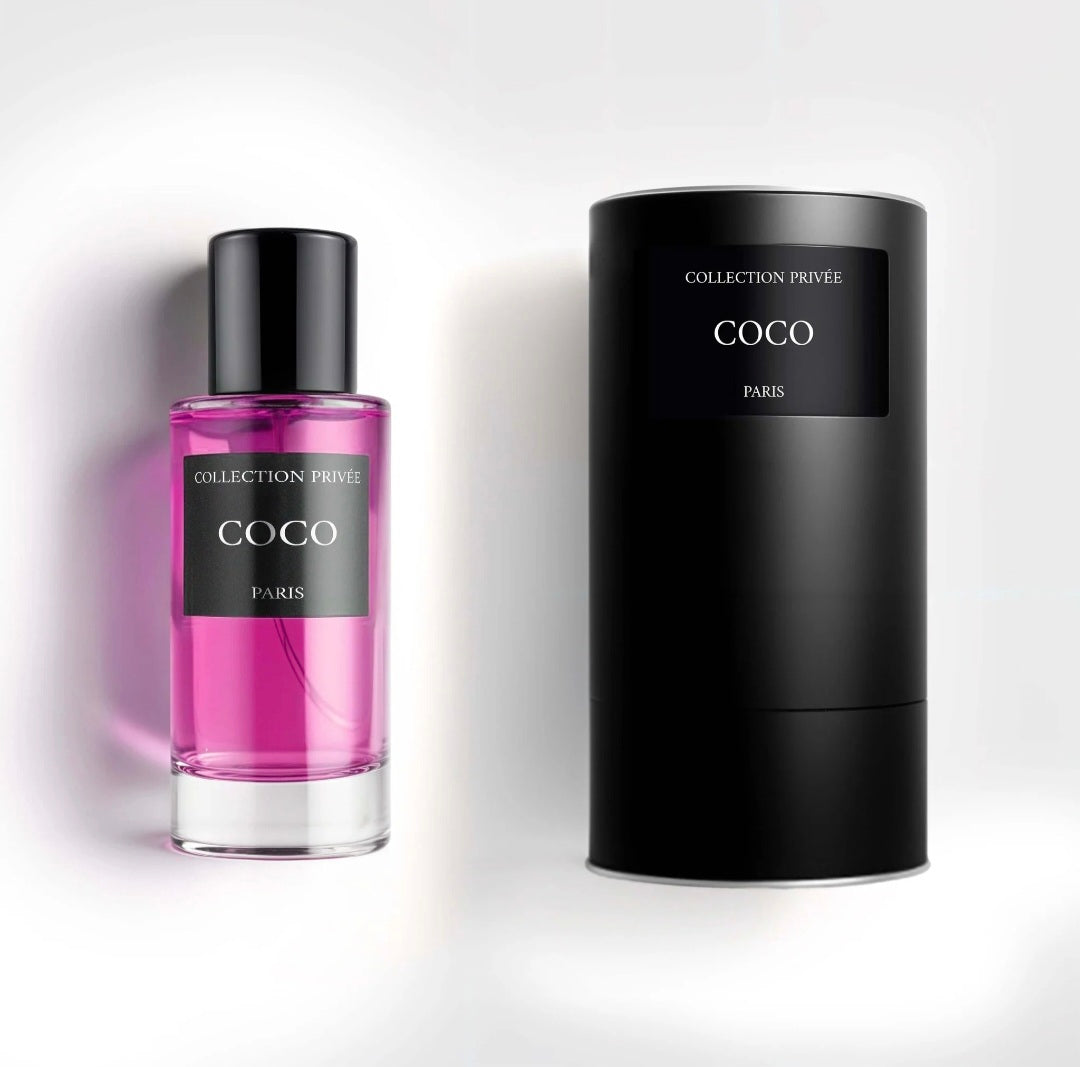 Découvrez Coco de la Collection Privée, un parfum féminin de 50 ml, fabriqué en France. Une fragrance inspirée de Coco Mademoiselle, il offre une senteur fidèle à l'original. Chaque flacon est livré dans un écrin noir élégant.
